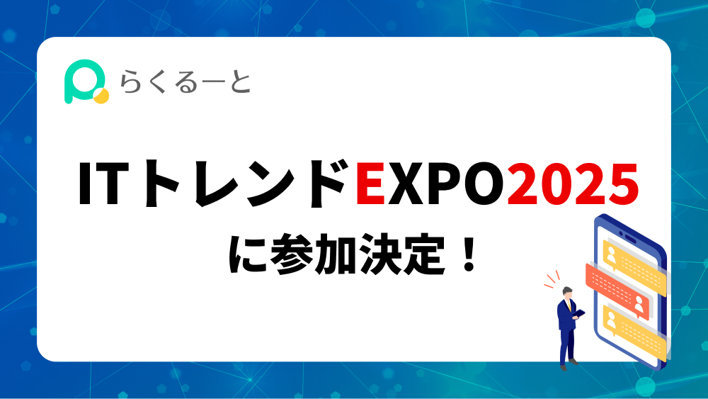 ITトレンドEXPO2025に「らくるーと」が参加いたします。 2025.09.02(火)〜09.05(金)に開催される、ITトレンドEXPOに「らくるーと」が参加いたします。ご興味のある方はぜひご来場ください。 ▼ ITトレンドEXPOについてはこちら 9/2[tue] – 9/5[fri] ITトレンドEXPO 2025 SUMMER